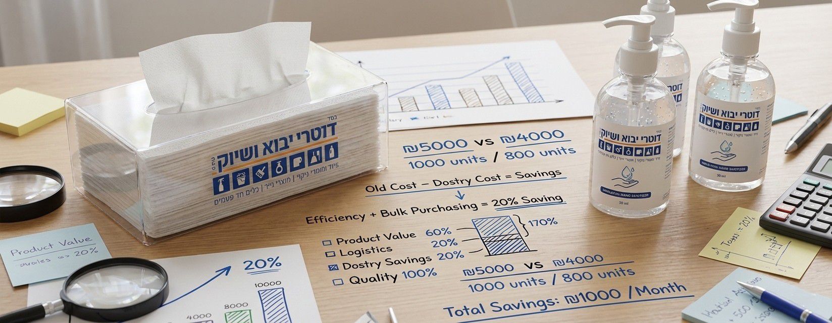 רכישה מרוכזת: תמיד עדיף לקנות בסיטונאות. המחיר לקרטון יורד משמעותית כשמזמינים כמות שמספיקה לרבעון קדימה.